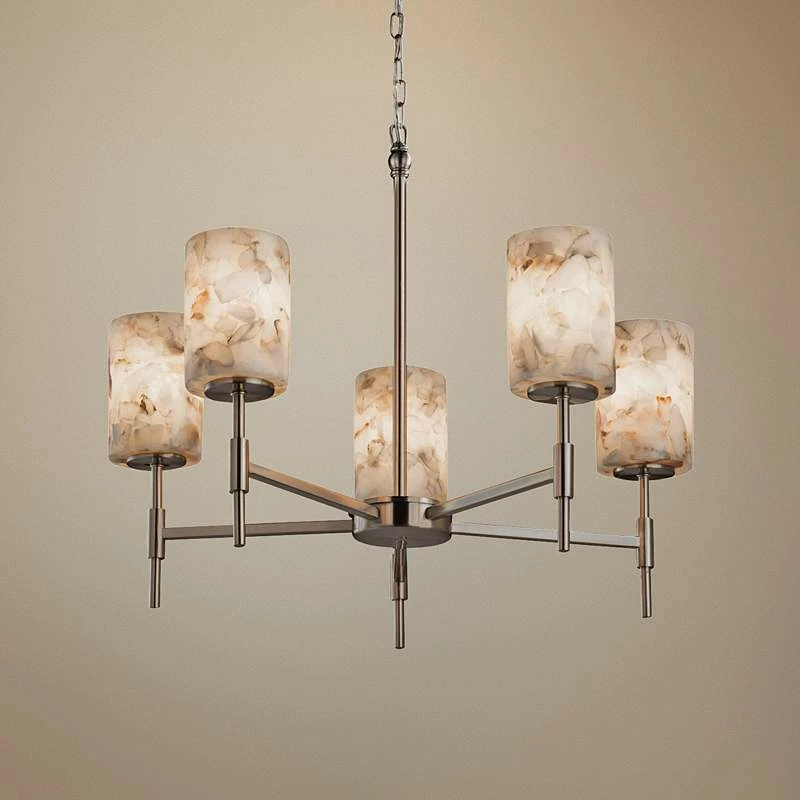 Alabaster Rocks!™ Union 24″ Wide Nickel 5-Light Chandelier