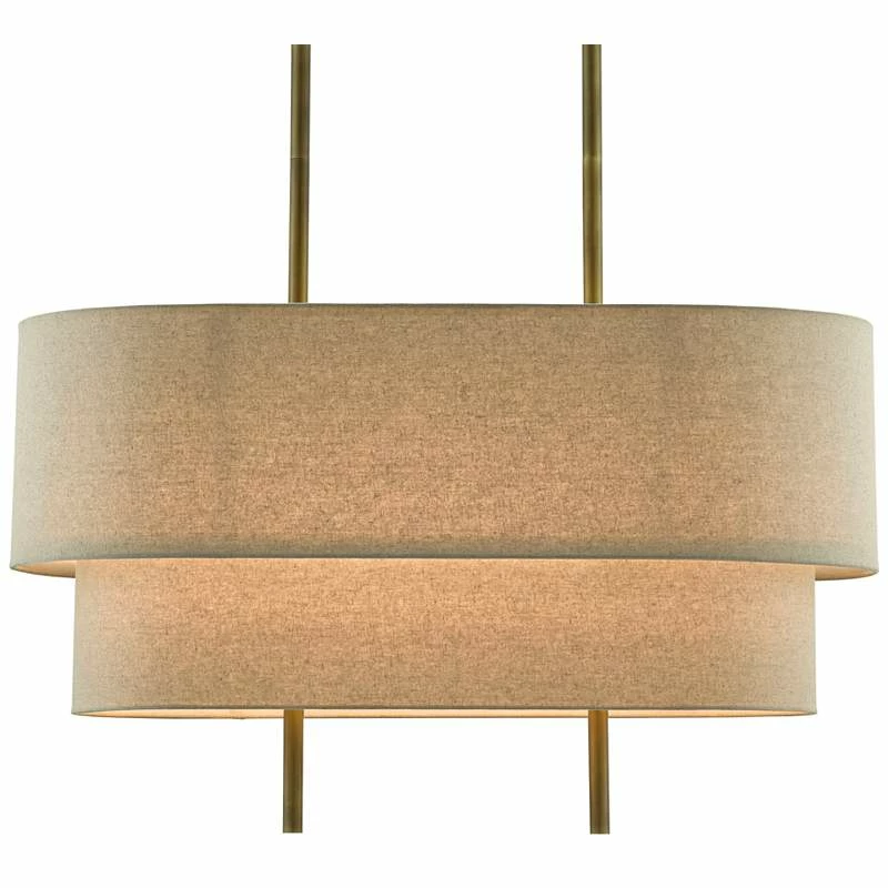 Combermere 42″ Wide Antique Brass And Linen Island Pendant