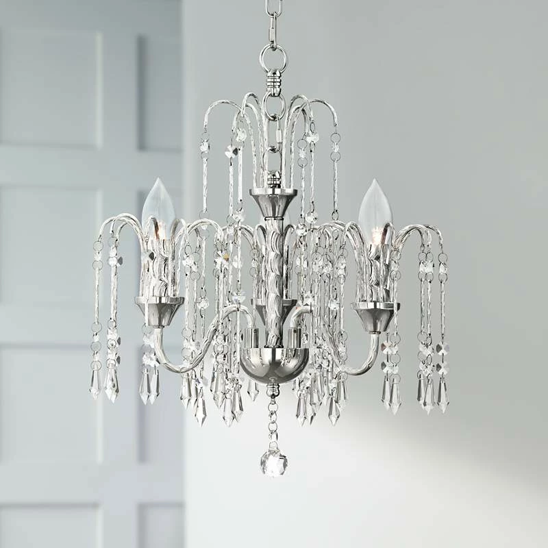 Crystal Rain 15″ Wide Chrome 3-Light Crystal Chandelier