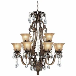 Iron Leaf 34″ Wide Bronze And Crystal 12-Light Chandelier
