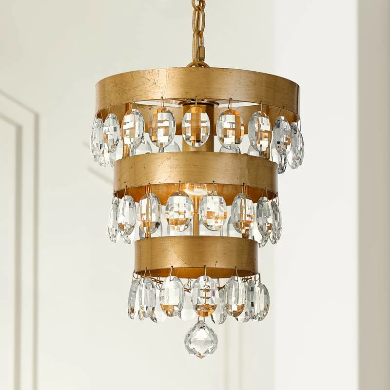 Crystorama Perla 10″W Antique Gold Crystal Mini-Chandelier