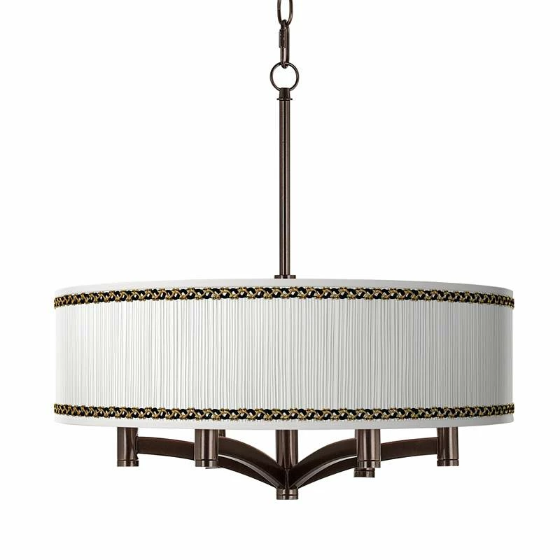Faux Pleated Giclee Print Lamp Shade With 6-Light Bronze Pendant Chandelier