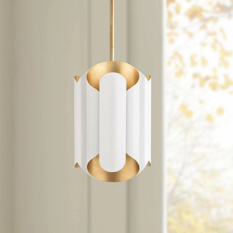 Hudson Valley Banks 12″W Gold Leaf And White Mini Pendant