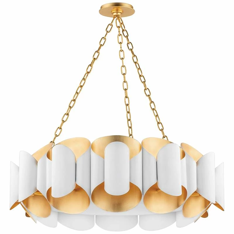 Hudson Valley Banks 34 1/2″W Gold Leaf And White Chandelier