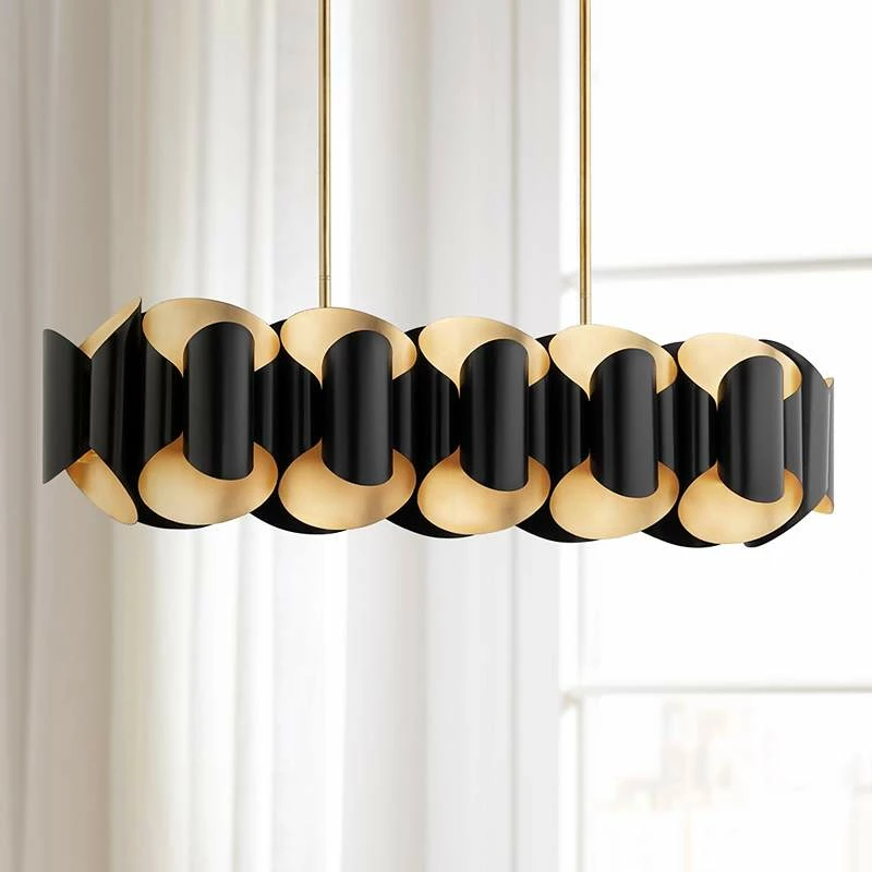 Hudson Valley Banks 46″W Gold Leaf And Black Island Pendant
