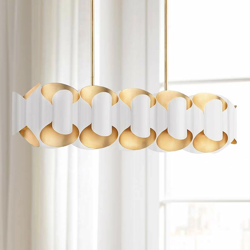 Be the first to review “Hudson Valley Banks 46″W Gold Leaf And White Island Pendant” Cancel reply