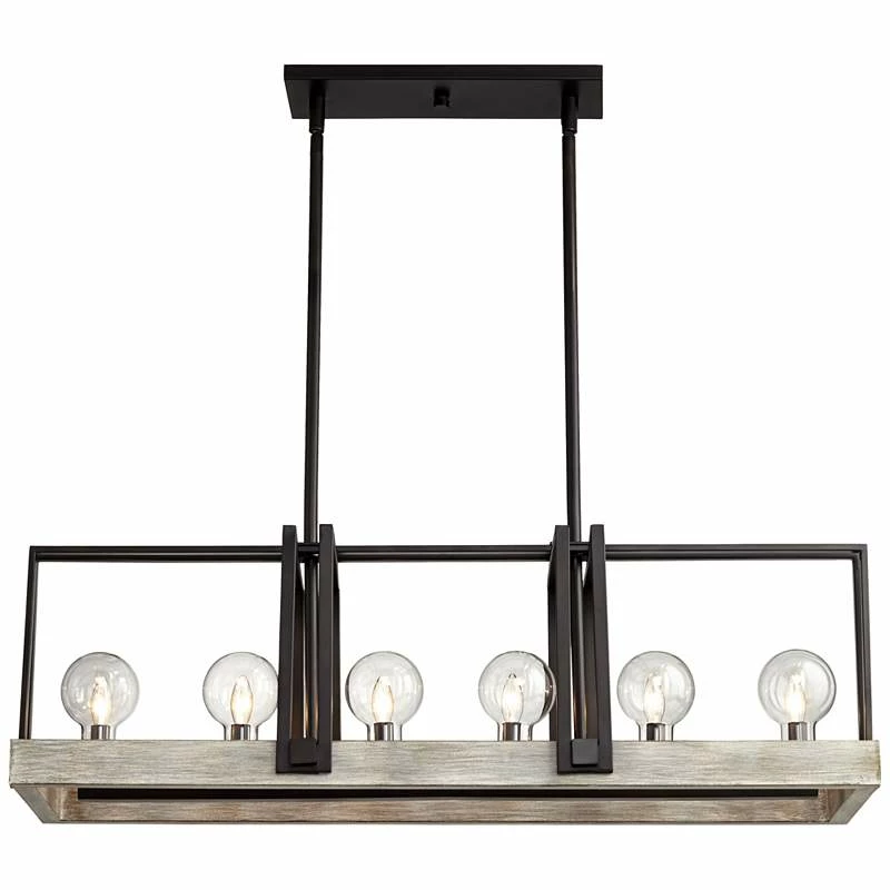 Laya 38 3/4″W Bronze W/ Wood Kitchen Island Light Chandelier