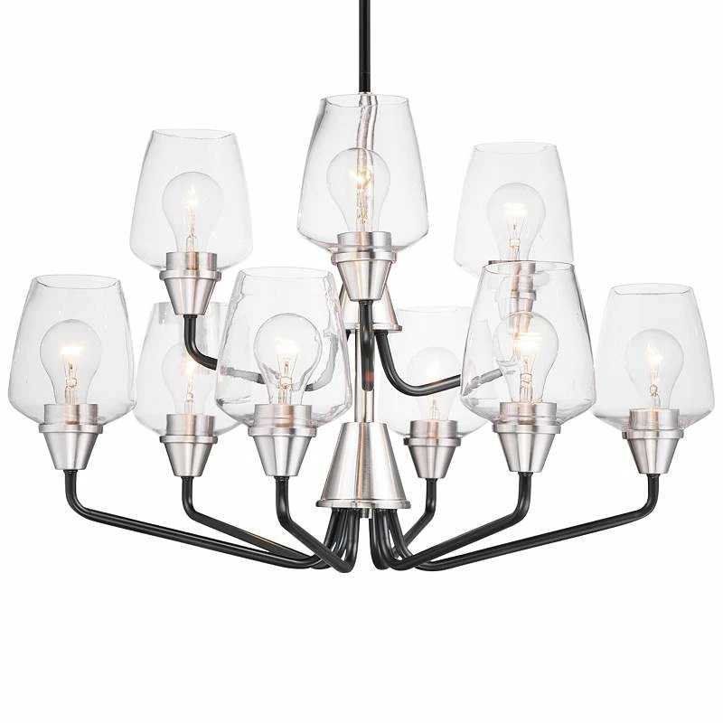Maxim Goblet 27″W Black And Satin Nickel 9-Light Chandelier