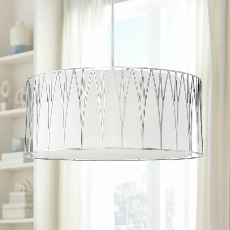 Regal Terrace 32″W Polished Nickel LED Drum Pendant Light