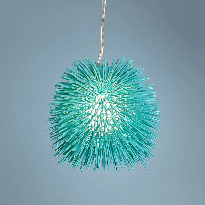 Varaluz Urchin 9″ Wide Aqua Velvet Mini Pendant Light
